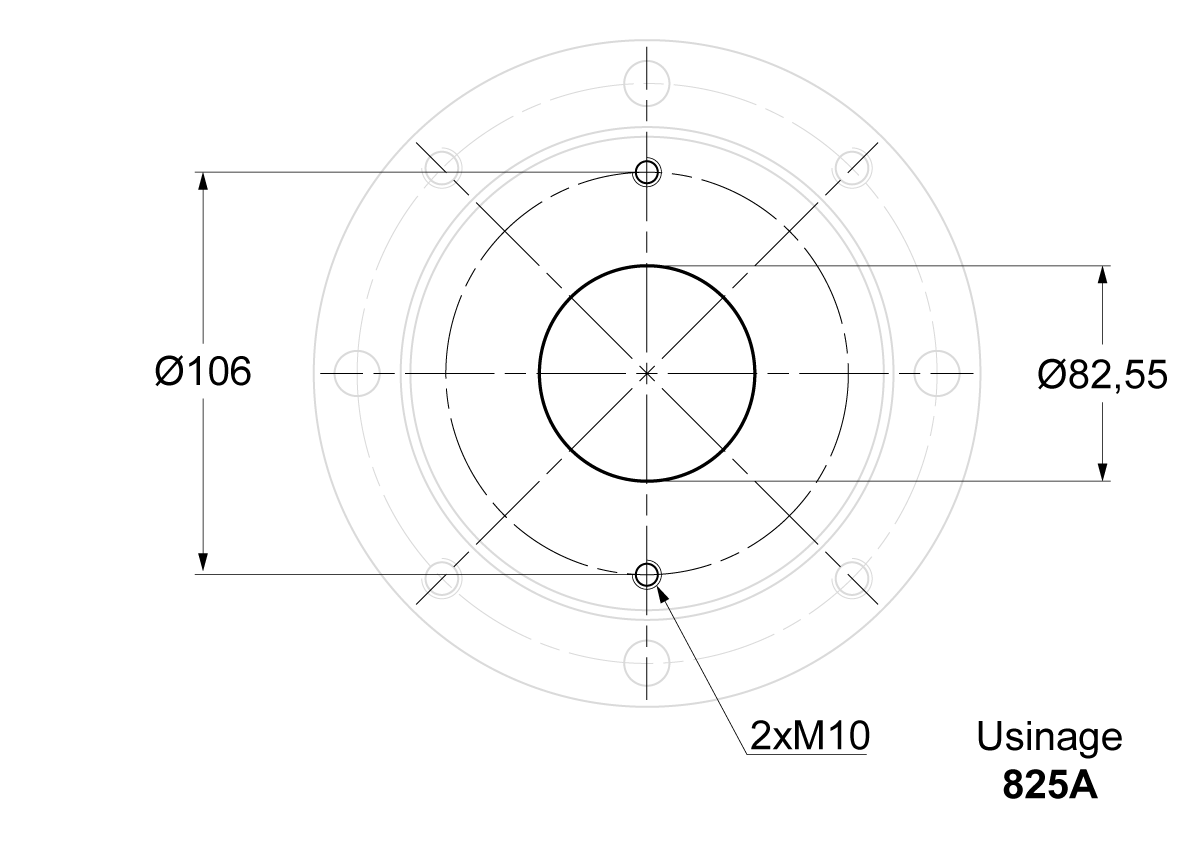 Usinage sur la lanterne | Centrage Ø82,55 + 2xM10 sur Ø106 |