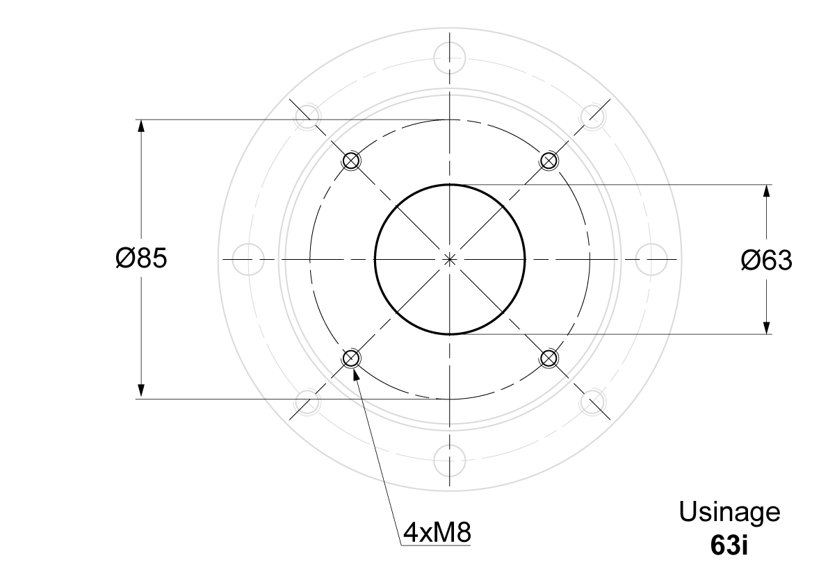 Usinage sur la lanterne | Centrage Ø63 + 4xM8 sur Ø85 |