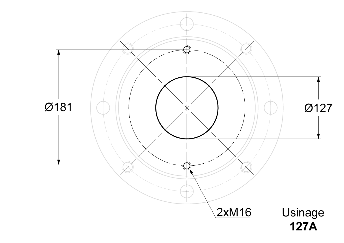 Usinage sur la lanterne | Centrage Ø127 + 2xM16 sur Ø181 |