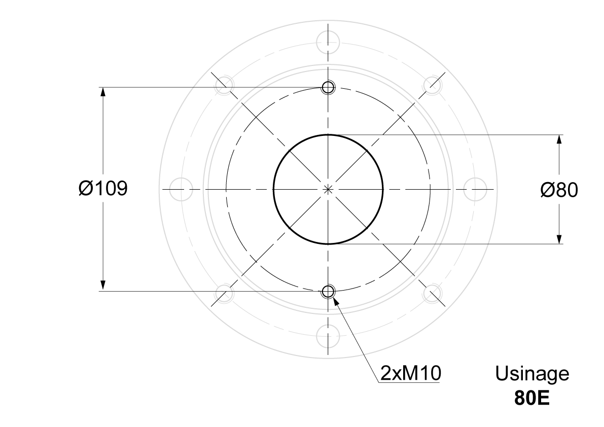 Usinage sur la lanterne | Centrage Ø80 + 2xM10 sur Ø109 |