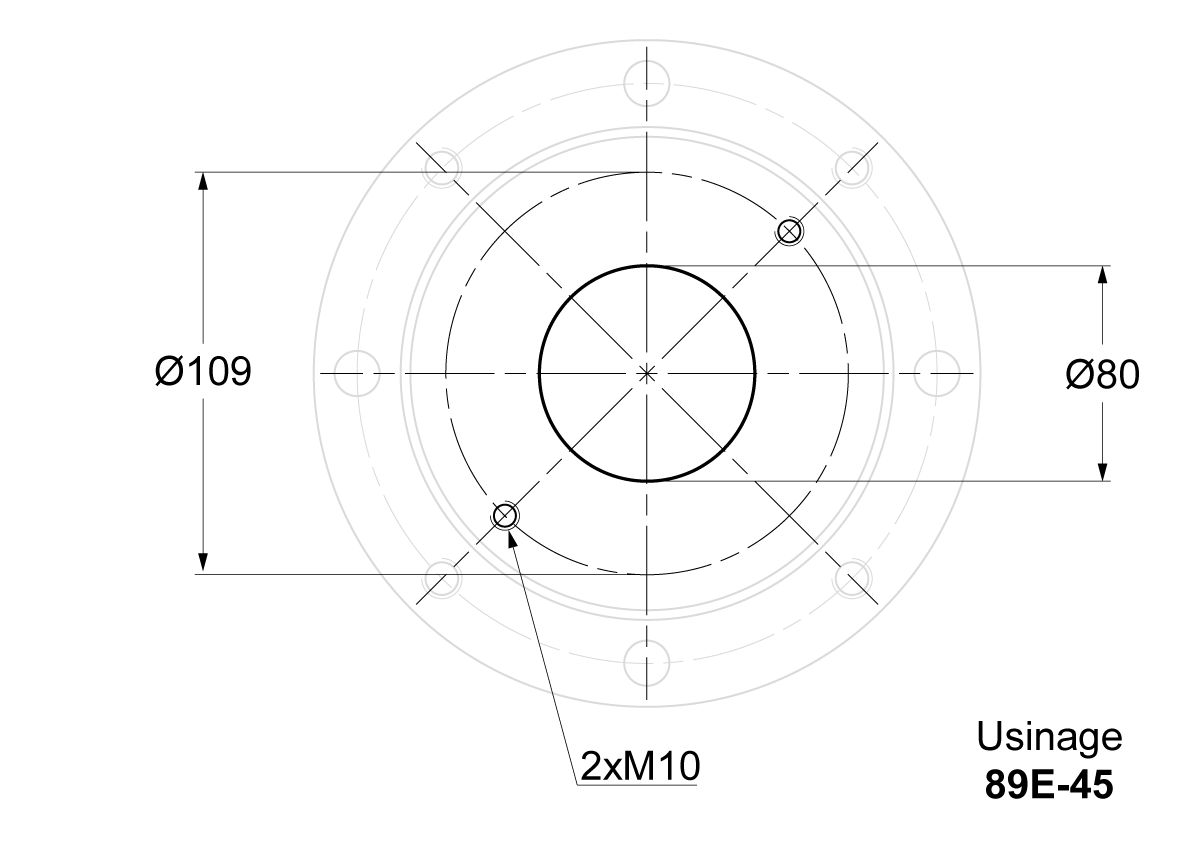 Usinage sur la lanterne | Centrage Ø80 + 2xM10 sur Ø109 à 45° |