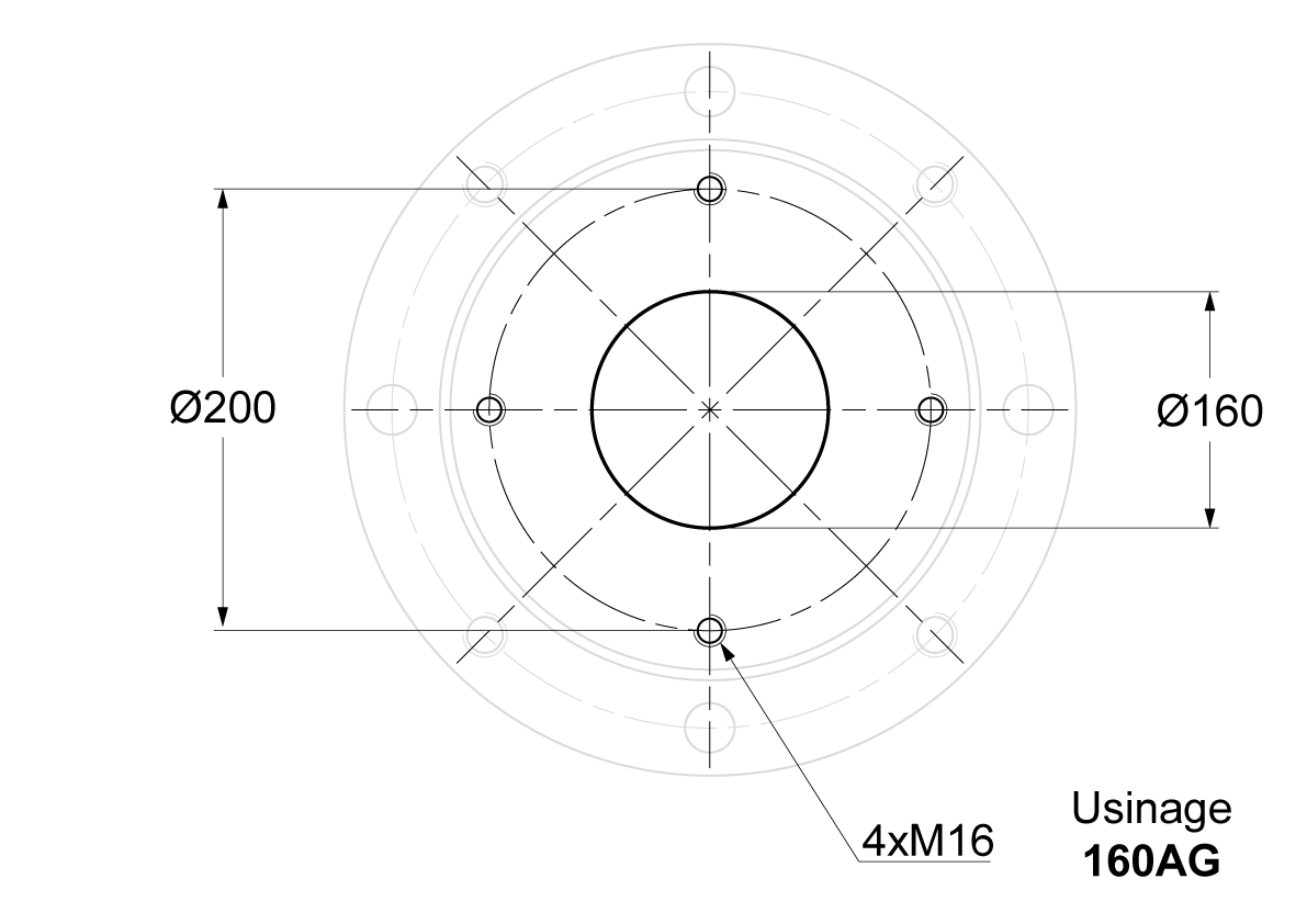 Usinage sur la lanterne | Centrage Ø160 + 4xM16 sur Ø200 à 45° |